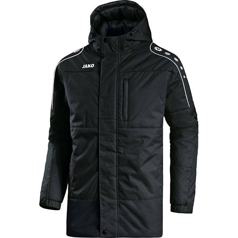 Koop hier het JAKO Performance coach jack in het zwart voor volwassenen. Dit is de perfecte lichtgewicht jas om voor of na een wedstrijd of training te dragen. Deze coachjas is perfect om tijdens verschillende gelegenheden te dragen. Zo bevat het jack een waterafstotende laag met PU-coating. Verder bevat het jack een thermische voering, wat je altijd warmhoudt. De bovenkant van het jack bevat een verticale borstrits en de zijkanten van het jack zijn uitgerust met diepe zakken met ritsen. Verder bevat het jack een verstopte rits en wordt het gekenmerkt door de capuchon, waar je je heerlijk in kan verstoppen. Deze capuchon bevat een tunnelkoord met stoppers, waarmee je de capuchon wat vaster of losser kan doen. De mouwen zijn uitgerust met een elastisch boord. Op de rechter borst prijkt het logo van JAKO en de trademark tekens van het merk staan op de schouders en mouwen. Dit is de ideale jas voor iedere coach! Zowel de buitenkant als de binnenkant van het jack bestaat voor 100% uit polyester.