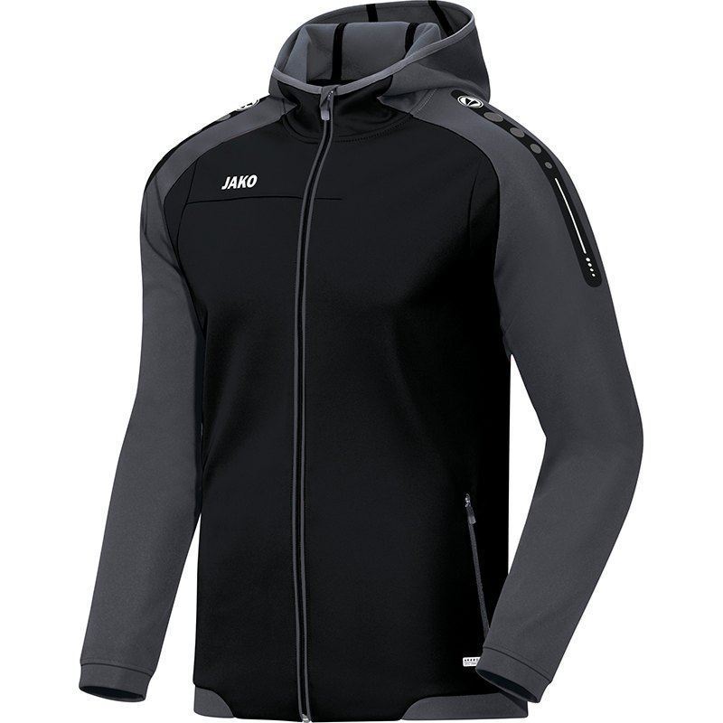 Koop hier het zwarte JAKO Champ trainingsjack met capuchon voor kinderen. Dit is het perfecte trainingsjack om in te trainen of sporten, maar ook om casual te dragen voor of na het sporten. Het jack is geheel zwart en bevat aan de zijkanten twee zakken met ritsen. Bovendien bevat het jack een capuchon, waarin je je heerlijk kan verstoppen. Verder wordt dit JAKO trainingsjack gekenmerkt door de hoge hals met een doorlopende rits. De mouwen zijn contrasterend bevatten de trademark tekens van JAKO en op de rechter borst prijkt het logo van het merk. De mouwen en de onderkant van het jack worden afgesloten door een ripp boord. De mouwen bevatten bovendien een laser cut tape, de absolute eye-catcher van de Champ lijn! De binnenkant van het jack is uitgerust met een zachte fleecevoering, voor het perfecte gevoel.