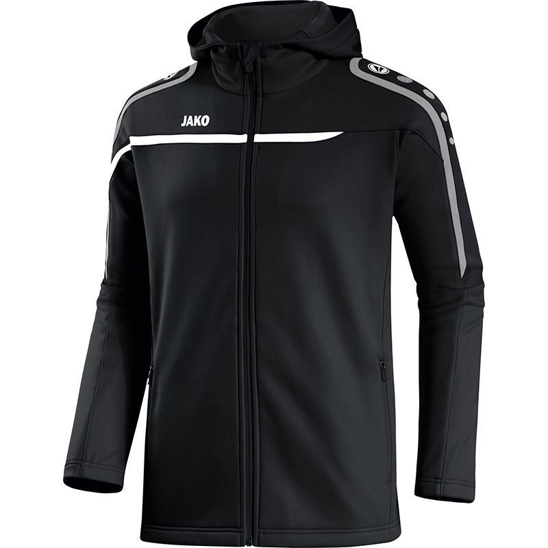 Koop hier het zwarte JAKO Performance trainingsjack met capuchon. De Teamline PERFORMANCE heeft een dynamische en sportieve uitstraling door de ultieme combinatie van asymmetrisch design, subtiel contrasterende inzetstukken en opvallende JAKO-dots. Dit is het perfecte trainingsjack om in te trainen of sporten, maar ook om casual te dragen voor of na het sporten. Het jack is geheel zwart en bevat aan de zijkanten twee zakken met ritsen. Bovendien bevat het jack een capuchon, waarin je je heerlijk kan verstoppen. Verder wordt dit JAKO trainingsjack gekenmerkt door de hoge hals met een doorlopende rits. De mouwen bevatten de trademark tekens van JAKO en op de rechter borst prijkt het logo van het merk. Over de mouwen bevinden zich ook twee dunne strepen en op de borst staat een horizontale lijn. De binnenkant van het jack is uitgerust met een zachte fleecevoering, voor het perfecte gevoel.