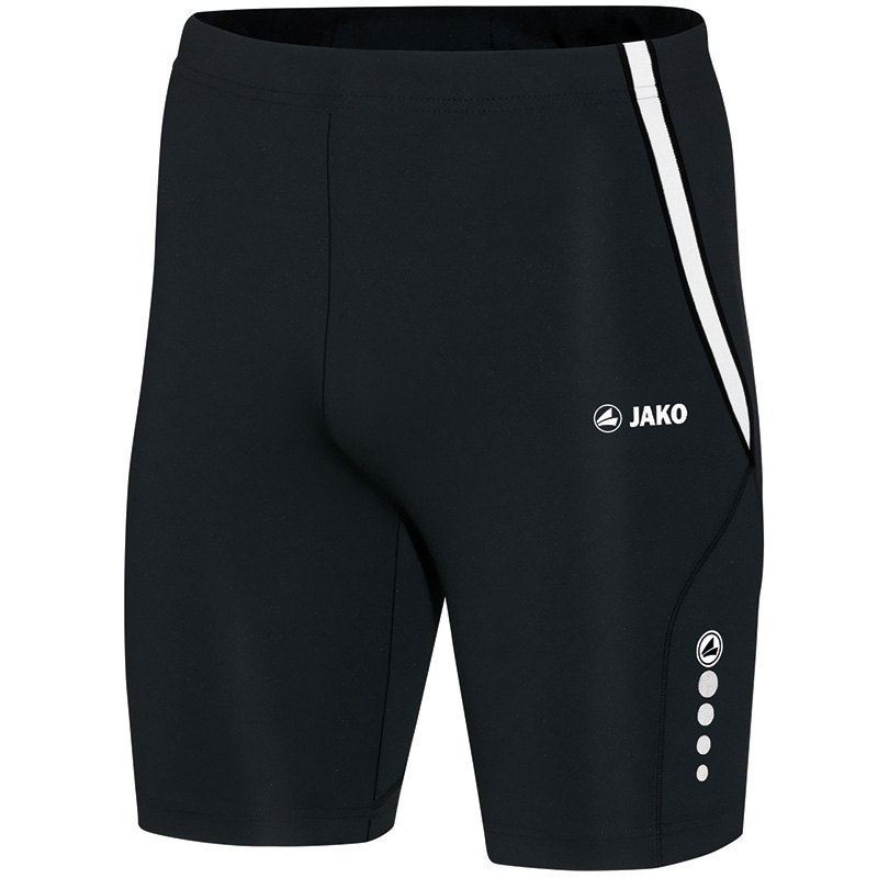 Koop hier het zwarte JAKO Running Athletico short. Dit polyester broekje is geheel zwart en bevat een elastieke tailleband met trekkoord aan de bovenkant. Hiermee kan de pasvorm van het broekje worden aangepast. De achterkant van het short bevat een mesh inzet voor extra ventilatie. De short heeft een sleutelzakje aan de binnenboord en de linkerpijp is voorzien van het logo van JAKO. Het short valt strak om de benen. Ook is deze short voorzien van flatnock naden. Dit broekje bestaat uit een functioneel polyester en is perfect om in hard te lopen. Het kan echter ook als onderbroekje gebruikt worden.