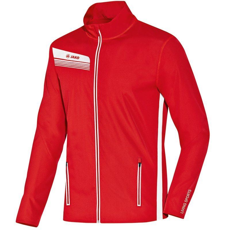 Koop hier het rode JAKO Running Athletico jack. Dit is het perfecte runningjack om in te trainen of sporten. Het jack is geheel rood en bevat aan de zijkanten twee zakken met ritsen. Verder wordt dit JAKO trainingsjack gekenmerkt door de hoge hals met een doorlopende rits. Op de rechter borst prijkt het logo van het merk. Op de zijkant van dit jack bevind zich een dunne witte streep. Het vest wordt afgesloten met een tunnelkoord en koordstoppers. De mouwen kunnen met een elastische binding worden afgesloten.