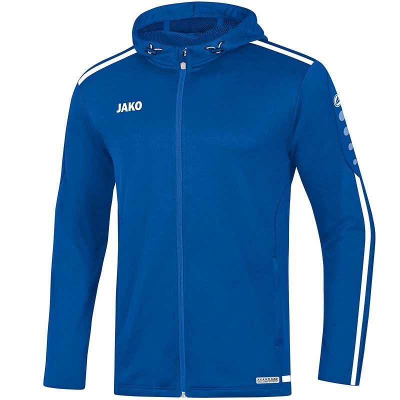 Koop hier het blauwe JAKO Striker trainingsjack met capuchon. Dit jack doet zijn naam eer aan en is de perfecte top om aan te vallen en je in de kijker te spelen. Dit is het perfecte trainingsjack om in te trainen of sporten, maar ook om casual te dragen voor of na het sporten. Het jack is geheel blauw en bevat aan de zijkanten twee zakken met ritsen. Bovendien bevat het jack een capuchon, waarin je je heerlijk kan verstoppen. Verder wordt dit JAKO trainingsjack gekenmerkt door de hoge hals met een doorlopende rits. De mouwen bevatten de trademark tekens van JAKO en op de rechter borst prijkt het logo van het merk. De mouwen bevatten bovendien een contrasterende strip met sublimatieprint. Dit beklemtoont de sportieve look van de Striker 2.0 lijn. De binnenkant van het jack is uitgerust met een zachte fleecevoering, voor het perfecte gevoel.