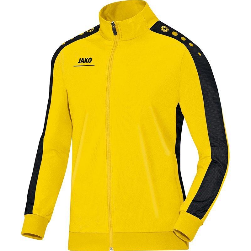Koop hier het geel/zwarte JAKO Striker polyester vest. Dit is het perfecte jack om tijdens, voor of na het sporten te dragen. Het is namelijk zowel een functioneel als een casual trainingsjack. Dit jack doet zijn naam eer aan en is de perfecte top om aan te vallen en je in de kijker te spelen. Het jack is geheel geel/zwart en bevat aan de zijkanten twee zakken met ritsen. Verder wordt dit JAKO trainingsjack gekenmerkt door de hoge hals met een doorlopende rits. Over de schouders en mouwen bevinden zich de trademark tekens van JAKO en op de rechter borst prijkt het logo van het merk. De mouwen bevatten bovendien een contrasterende strip met sublimatieprint. Dit beklemtoont de sportieve look van de Striker lijn. De mouwen en de onderkant van het jack worden afgesloten door een ripp boord.