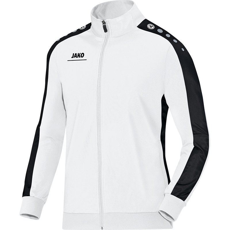 Koop hier het wit/zwarte JAKO Striker polyester vest. Dit is het perfecte jack om tijdens, voor of na het sporten te dragen. Het is namelijk zowel een functioneel als een casual trainingsjack. Dit jack doet zijn naam eer aan en is de perfecte top om aan te vallen en je in de kijker te spelen. Het jack is geheel wit/zwart en bevat aan de zijkanten twee zakken met ritsen. Verder wordt dit JAKO trainingsjack gekenmerkt door de hoge hals met een doorlopende rits. Over de schouders en mouwen bevinden zich de trademark tekens van JAKO en op de rechter borst prijkt het logo van het merk. De mouwen bevatten bovendien een contrasterende strip met sublimatieprint. Dit beklemtoont de sportieve look van de Striker lijn. De mouwen en de onderkant van het jack worden afgesloten door een ripp boord.
