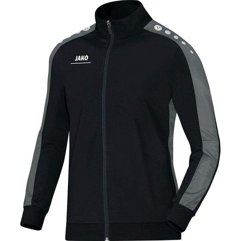 Koop hier het zwart/grijze JAKO Striker polyester vest. Dit is het perfecte jack om tijdens, voor of na het sporten te dragen. Het is namelijk zowel een functioneel als een casual trainingsjack. Dit jack doet zijn naam eer aan en is de perfecte top om aan te vallen en je in de kijker te spelen. Het jack is geheel zwart/grijze en bevat aan de zijkanten twee zakken met ritsen. Verder wordt dit JAKO trainingsjack gekenmerkt door de hoge hals met een doorlopende rits. Over de schouders en mouwen bevinden zich de trademark tekens van JAKO en op de rechter borst prijkt het logo van het merk. De mouwen bevatten bovendien een contrasterende strip met sublimatieprint. Dit beklemtoont de sportieve look van de Striker lijn. De mouwen en de onderkant van het jack worden afgesloten door een ripp boord.