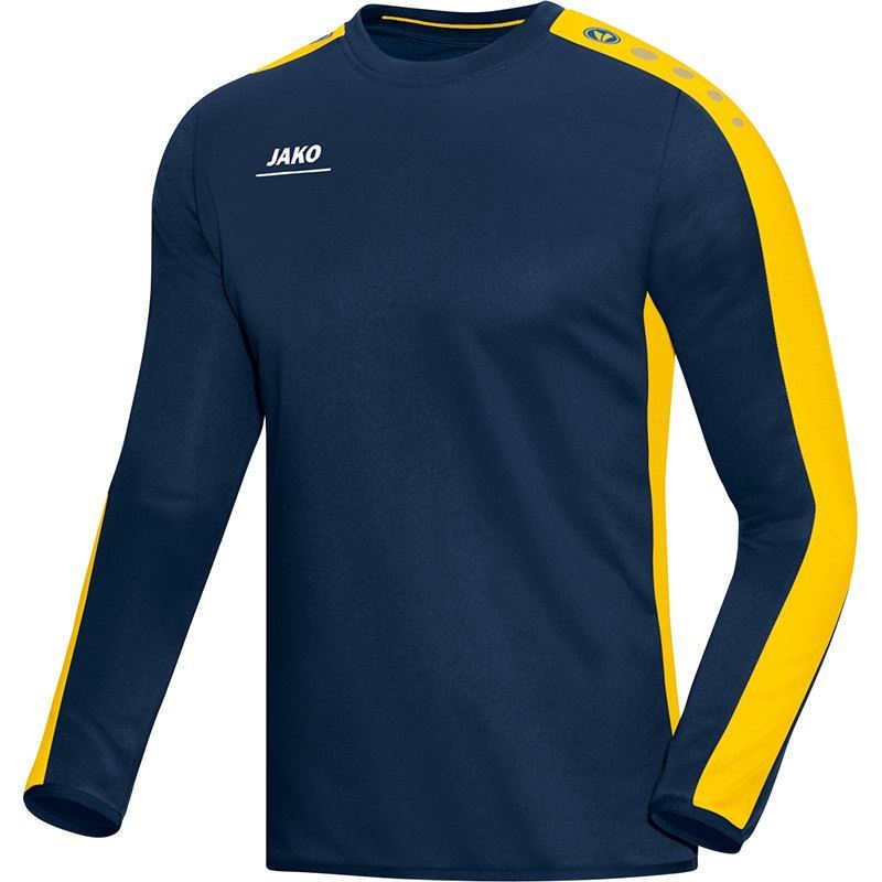 Koop hier de navy/blauw/gele JAKO Striker sweater. Deze training sweater doet zijn naam eer aan en is de perfecte top om aan te vallen en je in de kijker te spelen. Deze crew neck sweater bevat een ronde hals met ripp. De mouwen bevatten bovendien een contrasterende strip met sublimatieprint. Dit beklemtoont de sportieve look van de Striker lijn. Verder bevinden de trademark tekens van JAKO zich op de schouders en mouwen. De mouwen en de onderkant van de training top worden afgesloten door een elastisch boord. Dit is de perfecte training top om met je (zaal)voetbalelftal of bedrijf in te voetballen, te trainen of andere sporten in te beoefenenen. Deze training top bestaat voor 100% uit polyester. In deze top is ook gebruik gemaakt van Stretch-Micro-Twill, welke een maximaal draagcomfort garandeert.