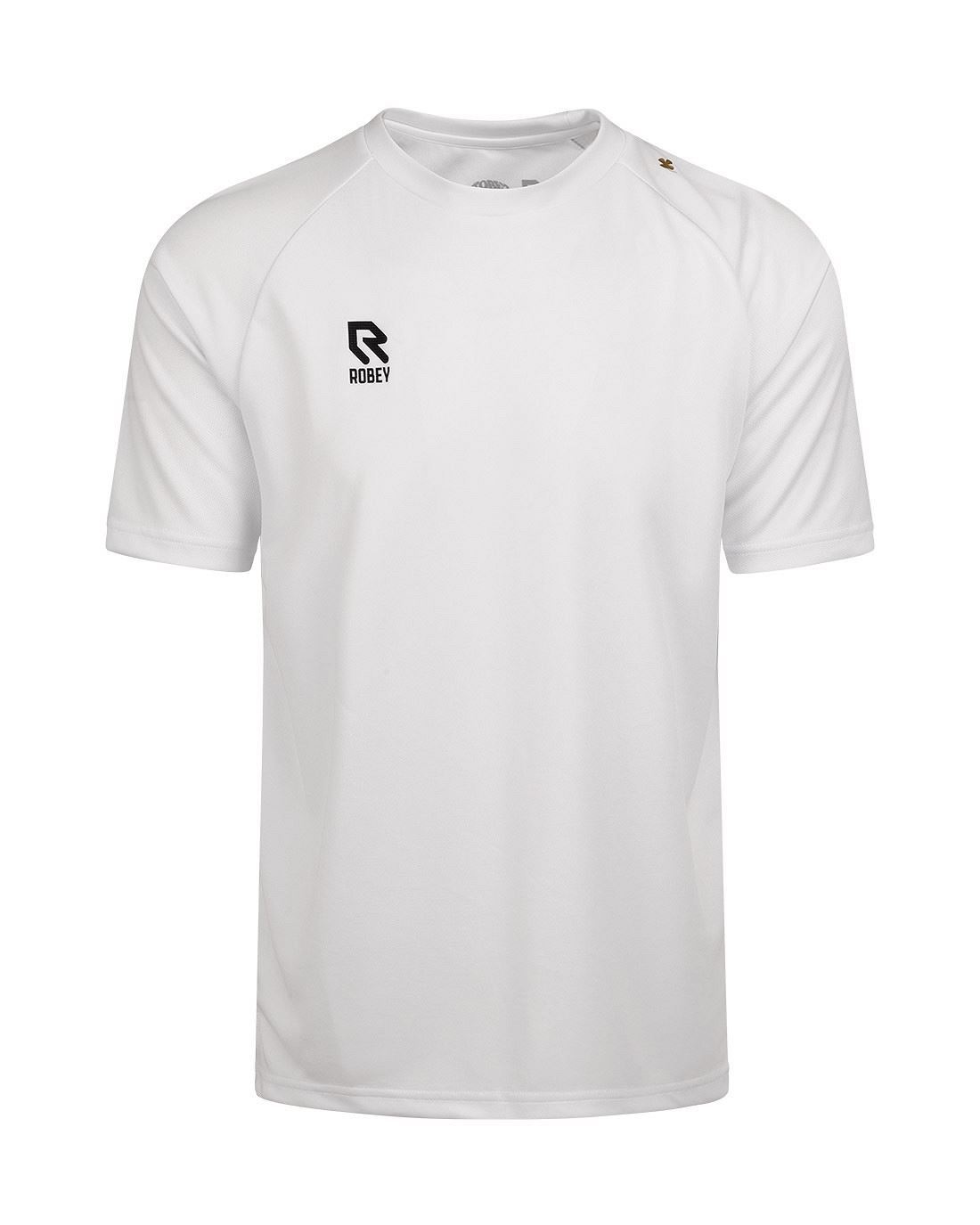 Ontdek het Robey Tennis Club T-Shirt - Wit voor volwassenen, dé keuze voor spelers die gaan voor comfort, prestaties en uitstraling. Dit stijlvolle, volledig witte tennis shirt is gemaakt van hoogwaardig polyester en voelt licht en ademend aan, zodat jij koel en gefocust blijft tijdens elke wedstrijd. De ronde hals zorgt voor een klassieke, sportieve look. Op de rechterborst vind je het herkenbare Robey logo, terwijl het gouden klavertje vier op de linkerschouder een subtiele, krachtige touch toevoegt. Op de achterzijde in de nek staat het Robey Racket Club logo, het exclusieve label van Robey voor tennis en padel. Dit shirt is ontwikkeld voor sporters die geen concessies doen. De sportieve pasvorm ondersteunt elke beweging en geeft je maximale bewegingsvrijheid op de baan. Of je nu verwikkeld bent in lange rally’s of een beslissende smash slaat, met het Club T-Shirt straal je zelfvertrouwen uit en haal je het beste uit je spel.